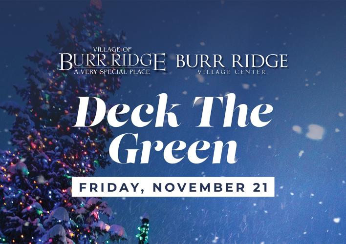 Deck the Green is an event to bring in the holiday season. It will occur outdoors on the Village Green, at the Burr Ridge Village Center. Attendees will have a chance to meet with Santa & Mrs. Claus. There will be train rides, Jugglers, Dickens Carolers, face painting, Buddy the Elf and even a Toy Soldier on stilts!
