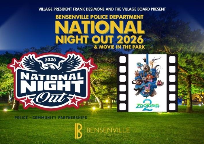 Come together with our Bensenville Police Department in a block party-style event with free giveaways and great information to help families stay safe. Bring a blanket, snacks and enjoy a free movie with your family, friends and neighbors! Popcorn, ice cream and drinks will be available for purchase at the Center Theatre.