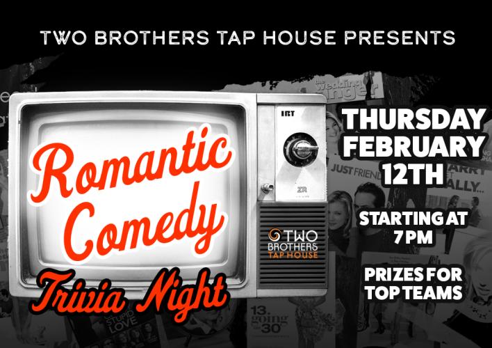 Celebrate Valentine’s Week with rom-com–themed trivia! Grab your sweetheart (or your favorite trivia partner), brush up on those iconic meet-cutes and quotable moments, and compete for some great prizes on trivia night, February 12 at Two Brothers Tap House. Games start at 7 PM—arrive a few minutes early to get your drinks and food orders in before the questions (and the romance) begin! 💘🍿
