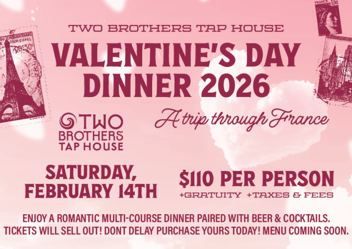Enjoy a French-inspired, multi-course dining experience, with each course perfectly paired with a handcrafted Two Brothers beer or a cocktail made with our own spirits.